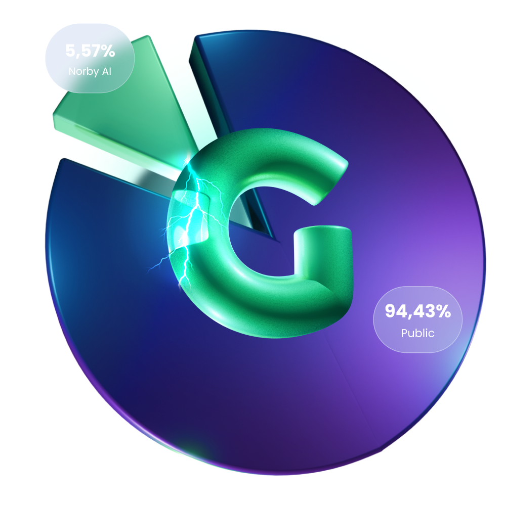 5.57% is held by Norby AI DEV, 30% was taken for the liquidity pool (of which 2/3 has already been redeemed)